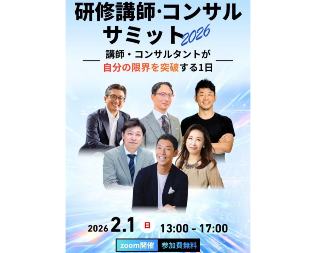 2月1日(日)にオンライン(Zoom)で開催される「研修講師・コンサルサミット2026~講師・コンサルタントが自分の限界を突破をする1日~」に、清水久三子が登壇します。
